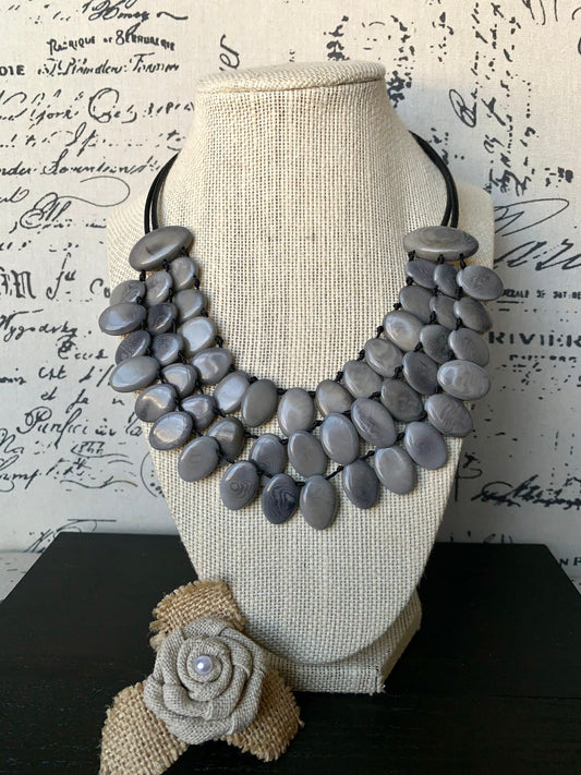 Gray statement necklace Tagua jewelry Fall fashion 2025s Big bold necklaces Fall fashion Wearable art Multi layer necklace Artsy gifts