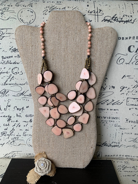 Pink statement necklace Tagua jewelry Fall fashion 2025 Unique jewelry for women Multi layer necklace Waterfall beaded necklace Art to wear