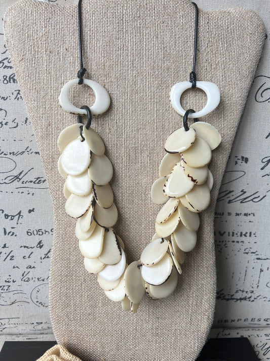 Ivory white statement necklace 14 year wedding anniversary gifts for wife Tagua necklace Adjustable cord Bold jewelry Wearable art