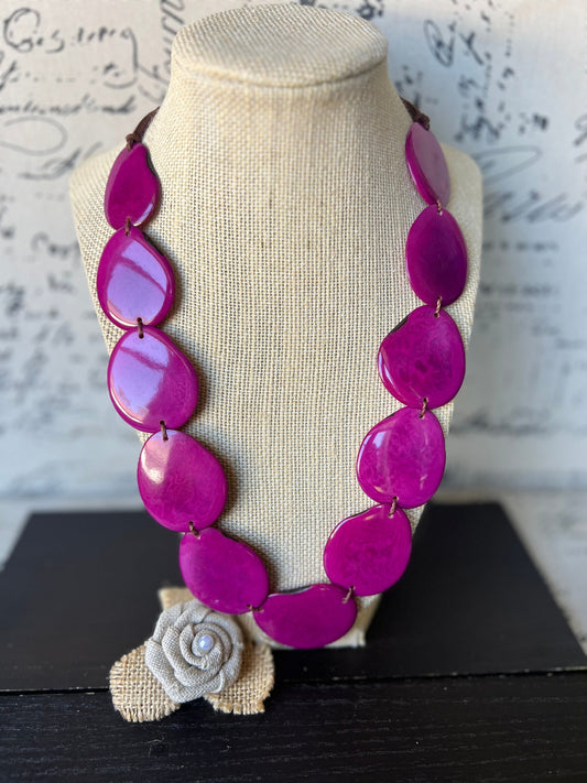 Magenta statement necklace Tagua jewelry Simple beaded necklace Adjustable cord Wearable art Handmade beaded necklace Fall fashion 2025s