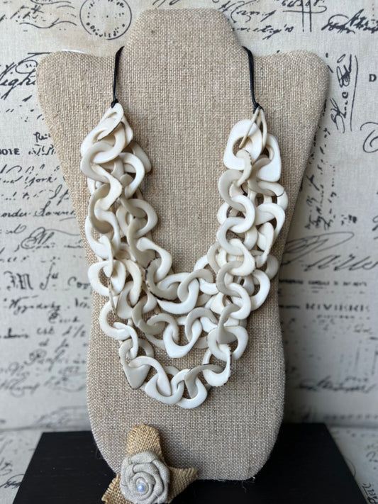 Pink and White Tagua Necklace, Bold Interlocked Loops, Adjustable Cord, Statement Beaded Necklace