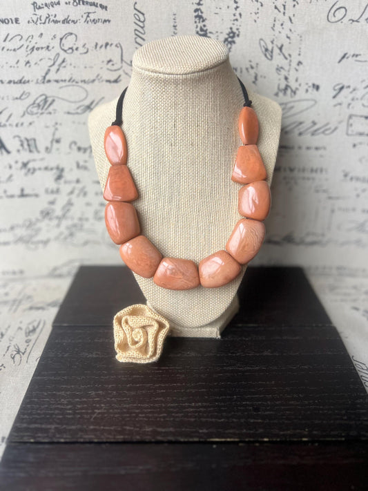 Peach color beads necklace Tagua jewelry Art to wear Big bead necklace women Chunky statement necklace Wearable art Fall fashion 2025