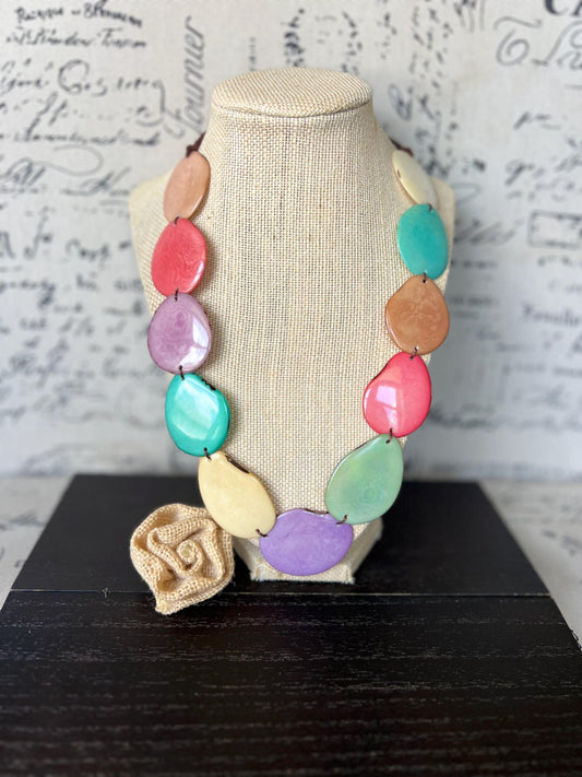 Rainbow simple necklace Tagua jewelry Fall fashion 2025s Adjustable cord Wearable art Fall fashion Pastel colors statement necklace