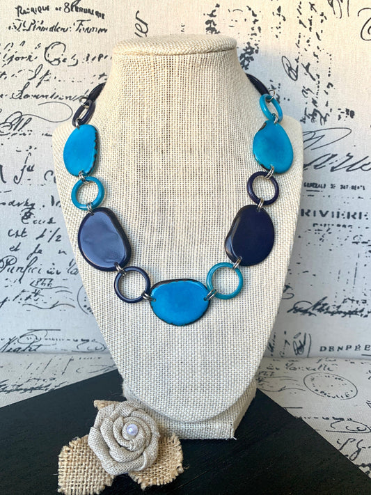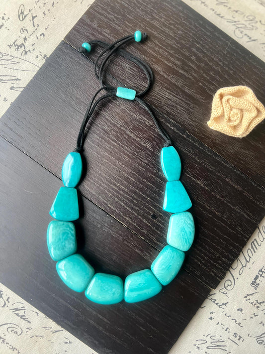 Turquoise blue necklace Tagua jewelry Short beaded necklace Fashionable gifts Trendy jewelry for women Wearable art Fall fashion 2025s