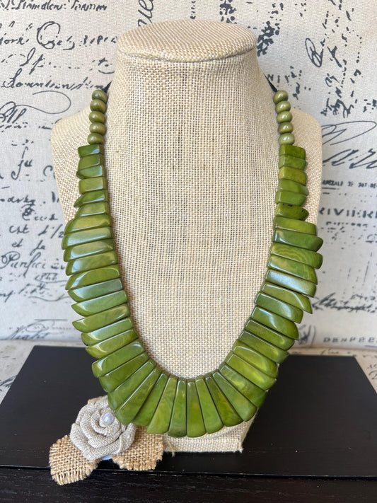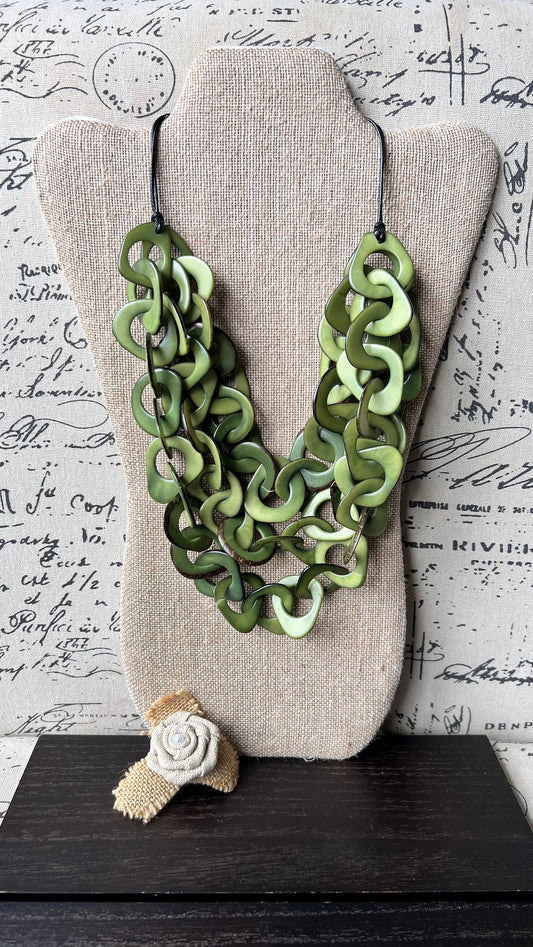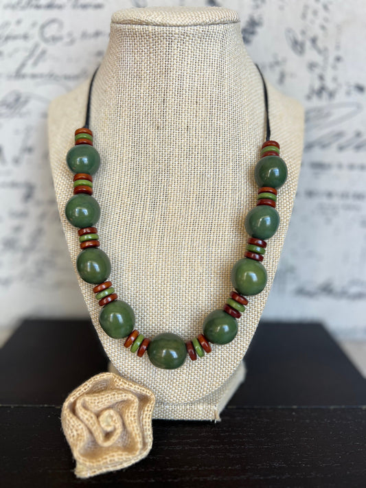 Olive green beaded necklace Tagua jewelry Fall fashion 2025 Adjustable cord Big bold chunky necklaces Statement multi layer Wearable art