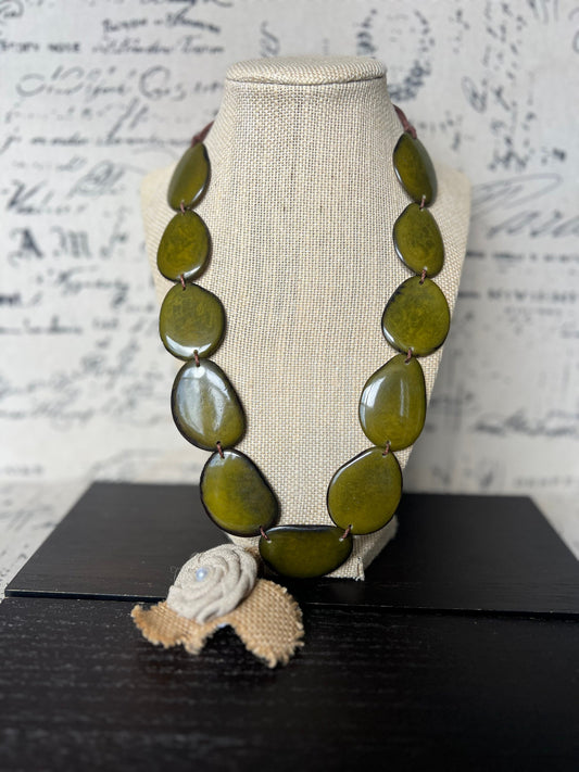 Olive green necklace Tagua jewelry Simple beaded necklace Art to wear Adjustable cord Fall fashion 2025 Wearable art Lightweight statement