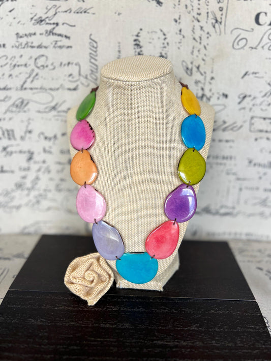 Rainbow simple necklace Tagua jewelry Mothers day gift Adjustable cord Wearable art Fall fashion 2025 Handmade beaded necklace Lightweight