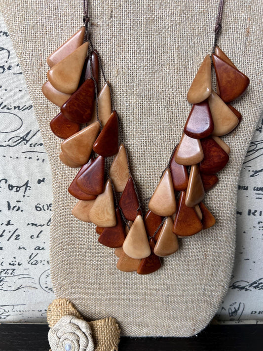 Brown waterfall necklace Mothers day gran gift Tagua jewelry Big bold necklaces Multi layer statement necklace Fall style women over 50