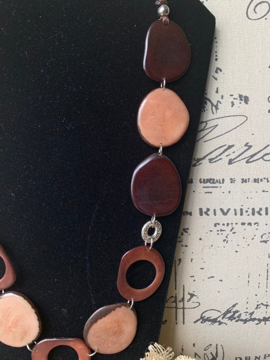 Tagua necklace Brown statement necklace Fall fashion 2025s Art to wear Big bold necklaces Lightweight necklace Wearable art Handmade beaded