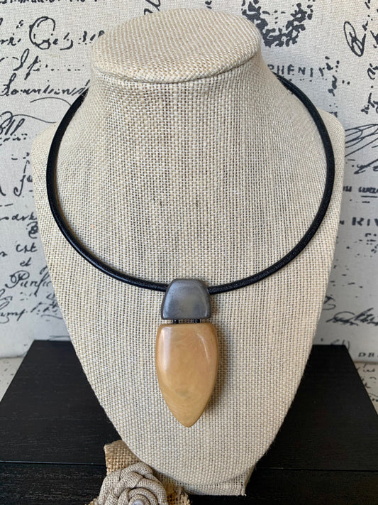 Beige and gray pendant necklace Tagua jewelry Fall fashion 2025 Fall fashion 2025s Beaded pendant necklace Classy pendant Magnet clasp