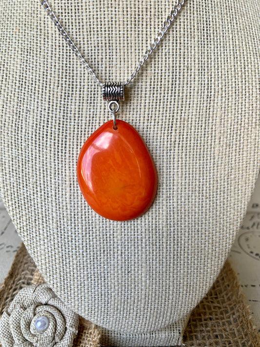 Orange beaded pendant Tagua jewelry Fall fashion Statement handmade pendant NO chain Artsy gifts Wearable art Beach trends Cruise wear