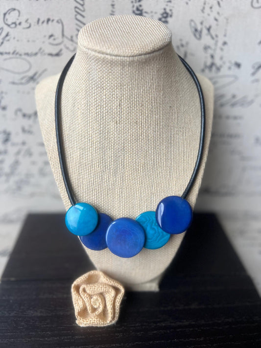 Blue statement necklace Tagua jewelry Beaded handmade necklace Geometric aesthetic necklace Art to wear Necklace with magnetic clasp