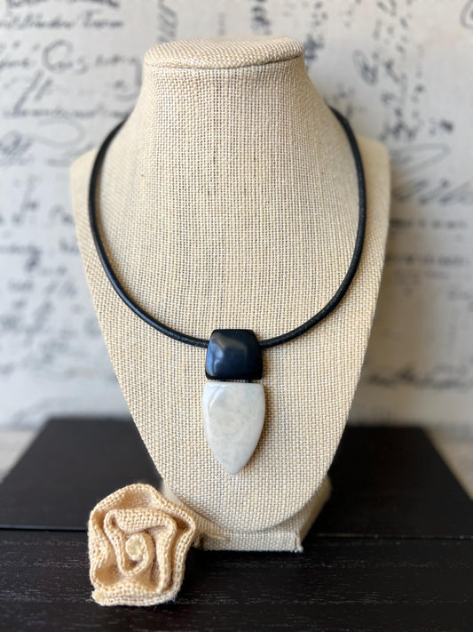 Black and white pendant necklace Tagua jewelry Fall fashion Beaded pendant necklace Statement handmade pendant Art to wear Elegant design