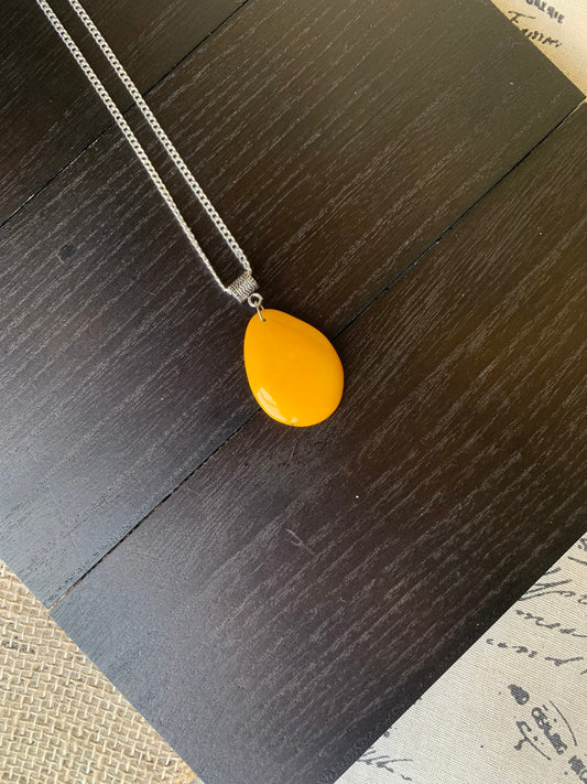 Yellow beaded pendant NO chain Tagua jewelry Fashionable gifts Fall fashions 2025 trends Artsy gifts Wearable art Gift ideas Boho style
