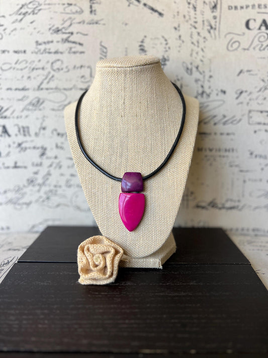 Pink and purple pendant necklace Tagua jewelry Mothers day gift Beaded pendant necklace Art to wear Necklace with magnetic clasp Lightweight