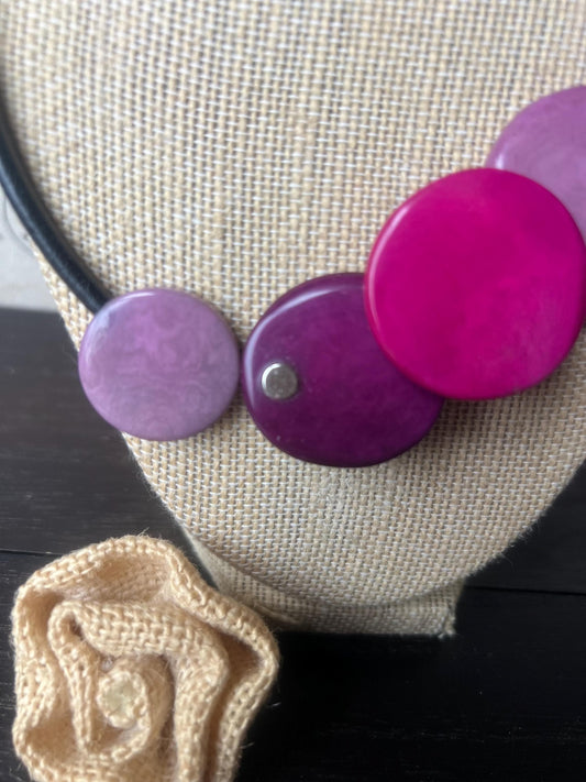 Pink purple and gray statement necklace Artsy necklaces for woman Tagua necklace Adjustable cord Art to wear Fall fashion 2025 Wearable art