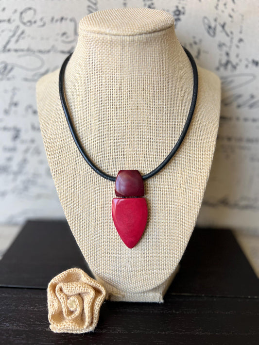 Red and burgundy pendant necklace Tagua jewelry Fall fashion 2025 Fall fashion 2025s Beaded pendant necklace Geometric pendant Elegant