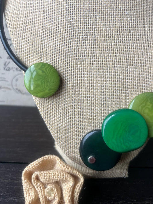 Green Tagua Nut Geometric Necklace, Round Beads Fashion Jewelry, Winter fashion