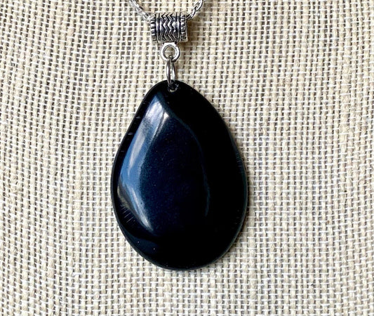 Handmade Black Tagua Nut Pendant, Eco Friendly Jewelry (No Chain)