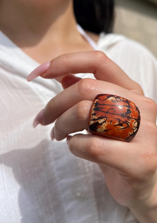 Terracotta statement cocktail ring Brown Tagua Rings Big bold dramatic ring Oversized Fashion ring Chunky ring Hand carved ring Art to wear