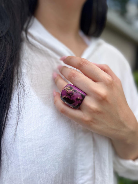 Purple statement cocktail ring Tagua Rings Big bold dramatic ring Oversized Fashion ring Elegant chunky ring Hand carved ring Aesthetic ring