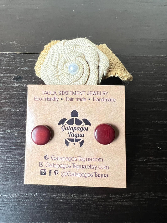 Maroon red posts earrings Tagua jewelry Summer fashion Round studs Artisan handmade earrings Button earrings with hypoallergenic posts