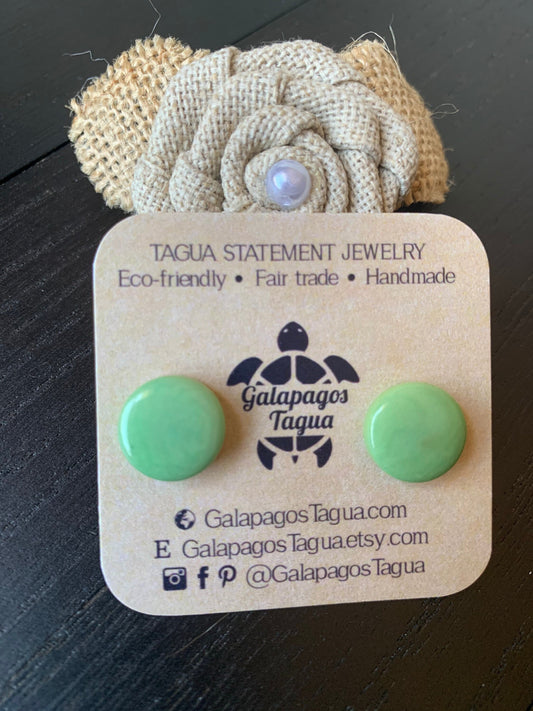 Mint green stud earrings Tagua jewelry Geometric round posts Gifts from Ecuador Resort wear Spring fashion trends Cute lightweight