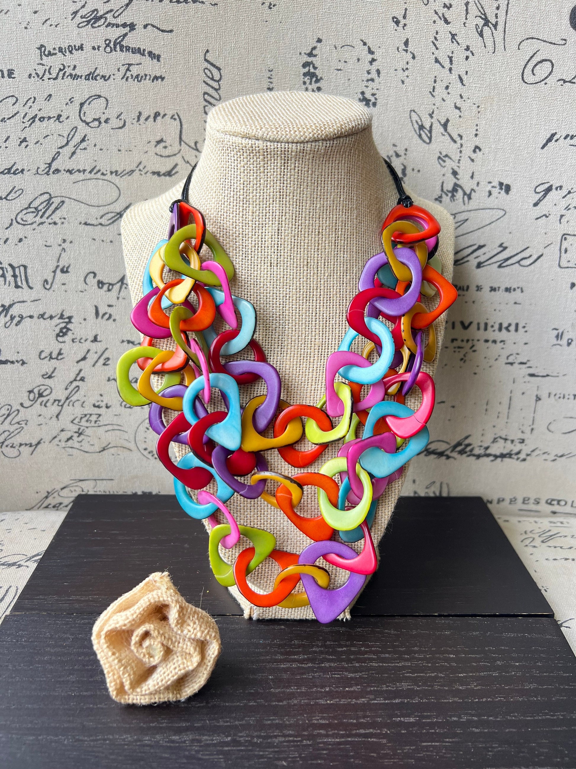 Rainbow necklace Tagua jewelry Statement adjustable collar Big bold chunky necklace Fall fashion 2023 Necklaces for women boho Gifts for her