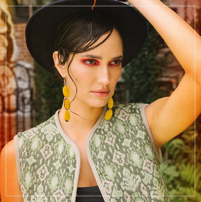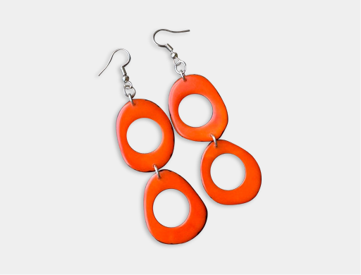 Orange red and yellow beaded necklace Tagua jewelry Geometric necklace with metallic clasp