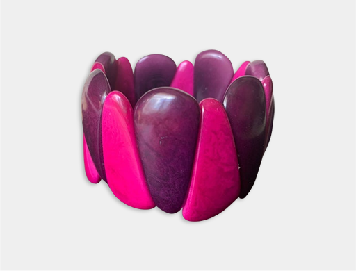 Red beaded bracelet made of tagua nut Elastic stretch bangle with black bead accents