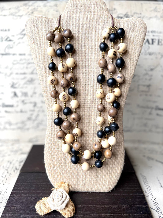 Black Beige Gray Multi Layer Tagua Necklace – Eco-Friendly Statement Jewelry